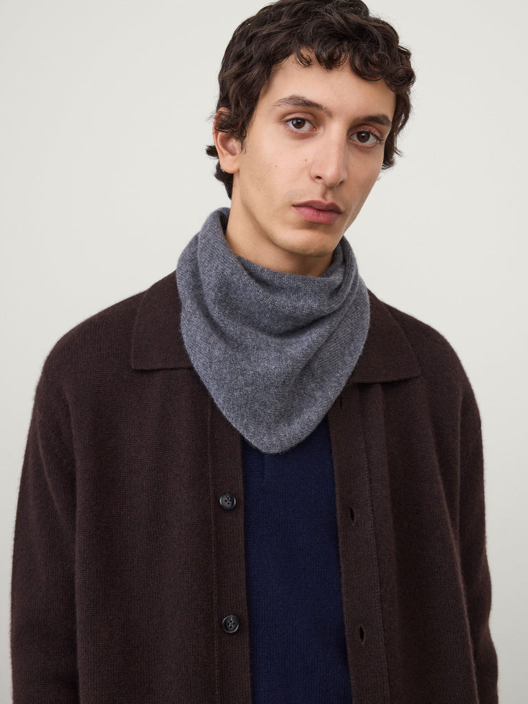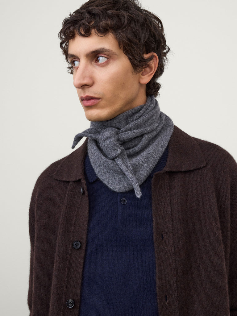 A new bandana, the Florianne scarf is crafted in our signature plain knit, mid-weight cashmere with a soft and smooth hand feel. The triangular silhouette can be worn as a headscarf or a neck scarf, framing the face in a gentle drape.