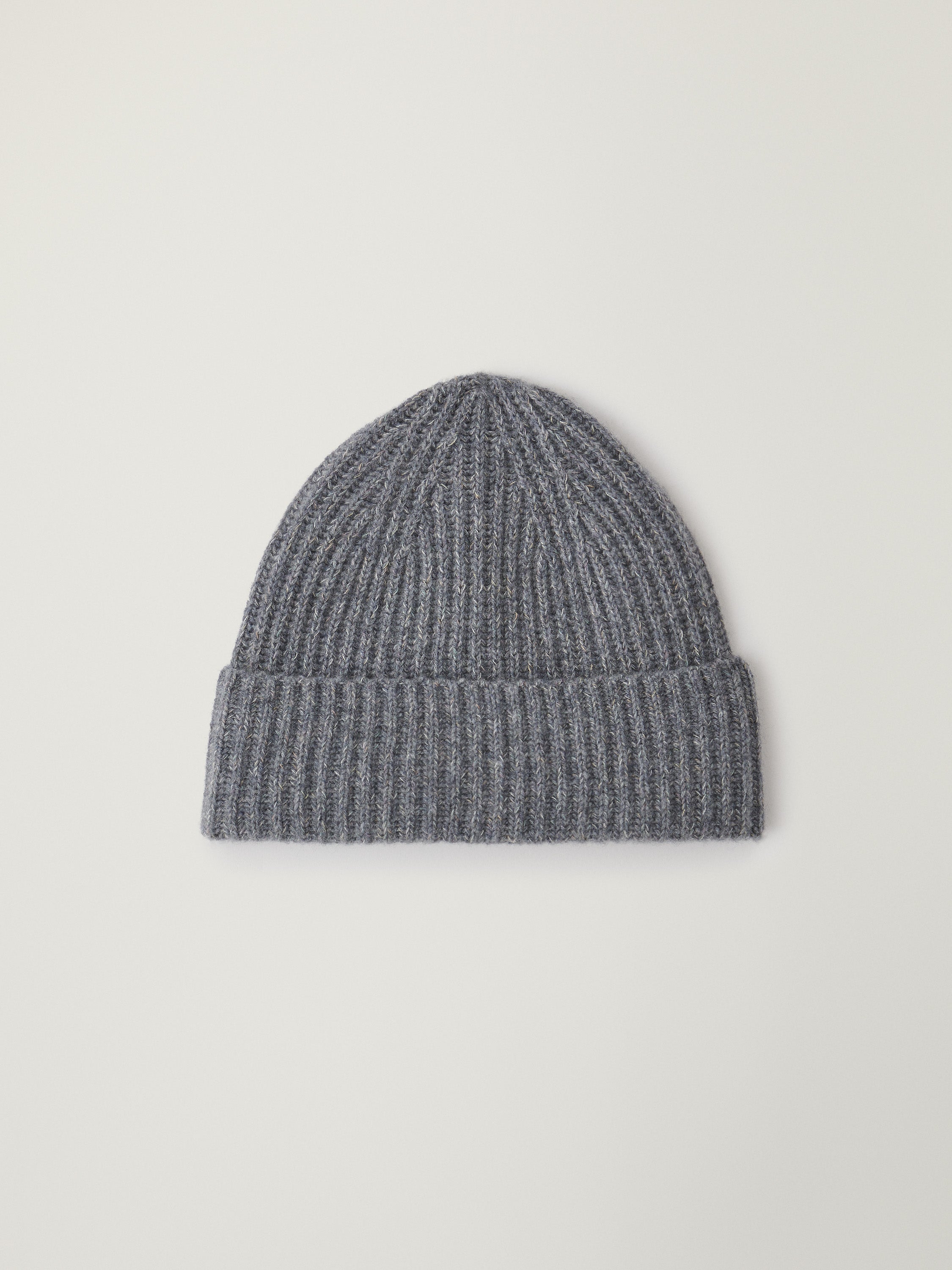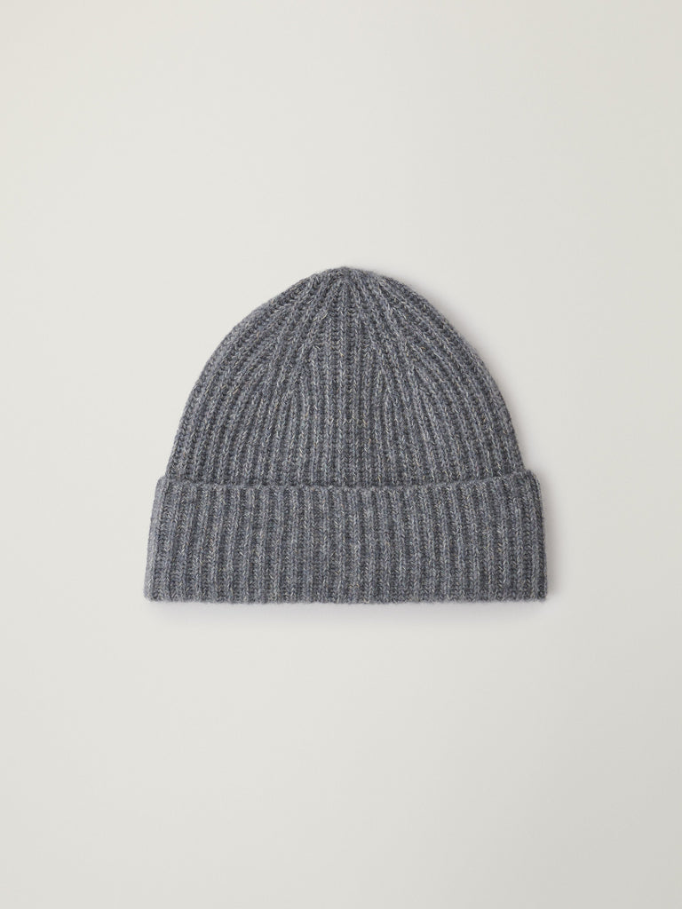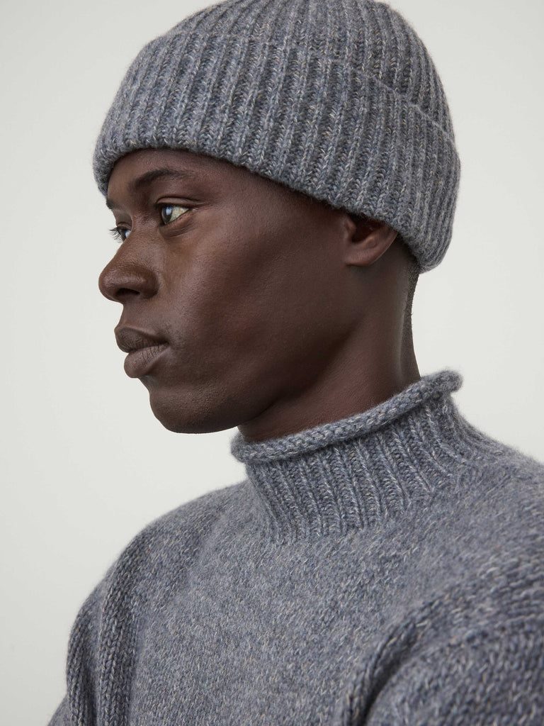 A trusted winter warmer, the Menton hat is crafted in ribbed, heavy knit cashmere, this season reworked in a digitally printed yarn for an organic look and a depth of tone. The regular fit, beanie silhouette is complete with a brim that is folded at the front.