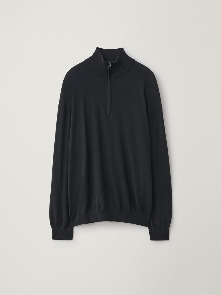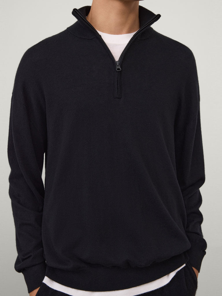 A sportswear-inspired sweater, the Otis sweater is crafted in our fine knit cotton cashmere composition suggestive of jersey. The regular fit silhouette is defined by a zipped mock turtle neck, full-length sleeves and a ribbed hem and trims.