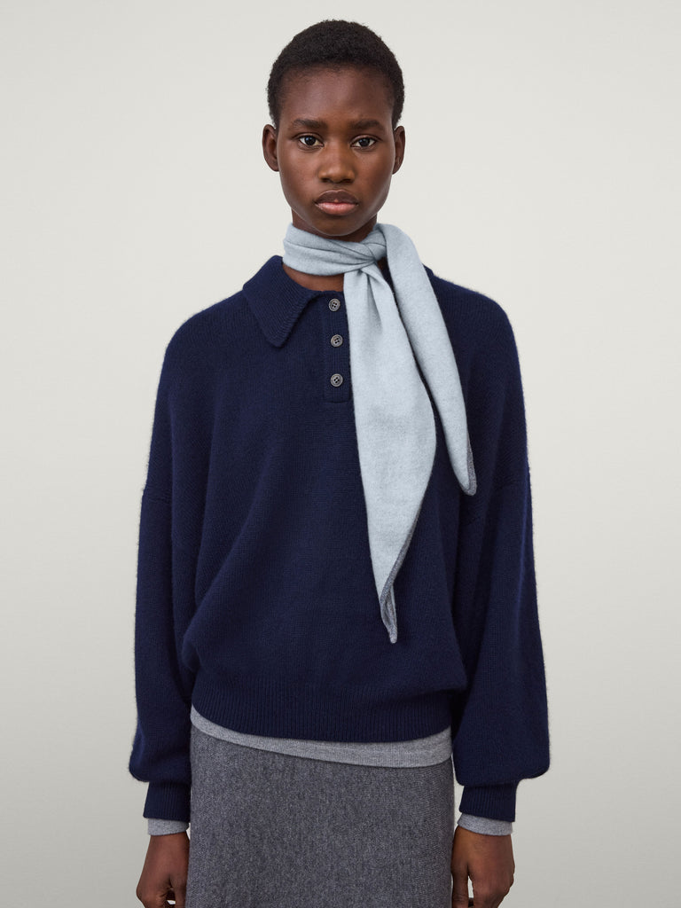 A neat shawl silhouette, the Chelsea scarf is crafted in our signature plain knit cashmere. With its contrast colour trim, it adds a subtle accent to cashmere pieces from across the collection.