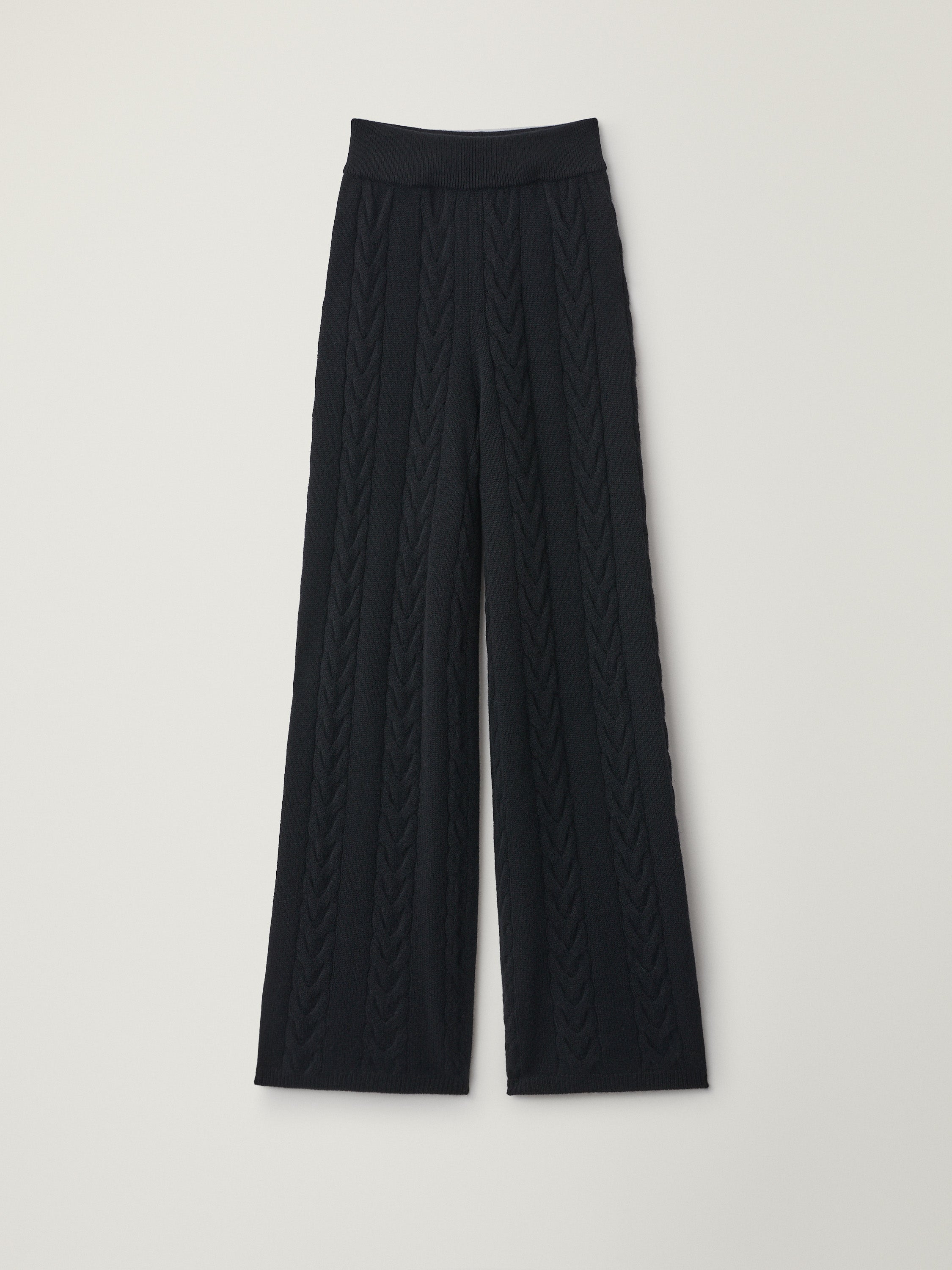 A relaxed everyday trouser, the Dagny trouser is crafted in dense heavy knit cashmere adorned with cable knit panels. The straight, full-length silhouette sits comfortably at the waist and features an elasticated waistband.