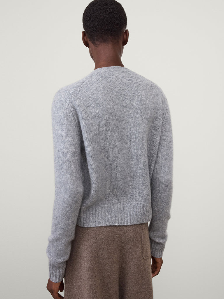 A featherlight staple, the Marionette cardigan is knitted in our silk cashmere blend inviting a new, lighter sensibility to cashmere. The regular fit silhouette is complete with a v-neck, full-length sleeves, a button-down front and ribbed trims.