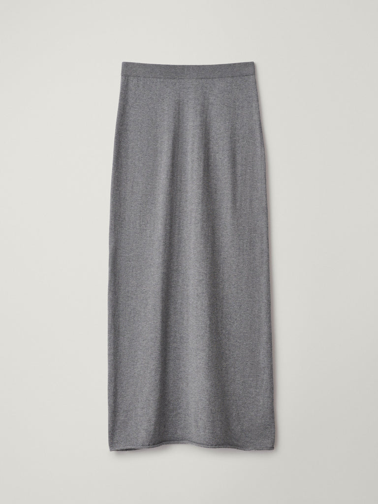 An effortless pull-on staple, the Charlotta skirt is crafted in our jersey-like fine knit cashmere fabric blended with cotton. The regular fit, straight silhouette sits comfortably at the waist with an elasticated waistband and falls into a lightweight maxi skirt finished with rolled hems for an undone touch.