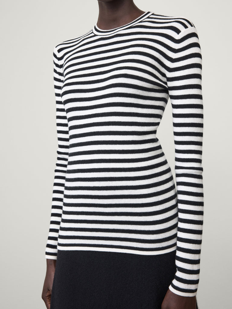 A jersey-inspired staple, the Vivian top is crafted in fine single rib knit cashmere blended with cotton for a light and lofty feel. The fitted silhouette features a round neck, full-length sleeves, a straight hem and a subtle all-over rib.