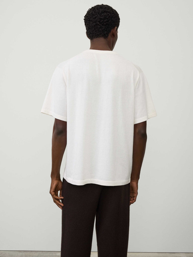 A light and lofty staple, the Bradley T-shirt is expertly knitted in our jersey-inspired cashmere cotton composition. The regular fit silhouette is complete with a ribbed crew neck, short sleeves and a straight hem which is finished with ribbed trims.