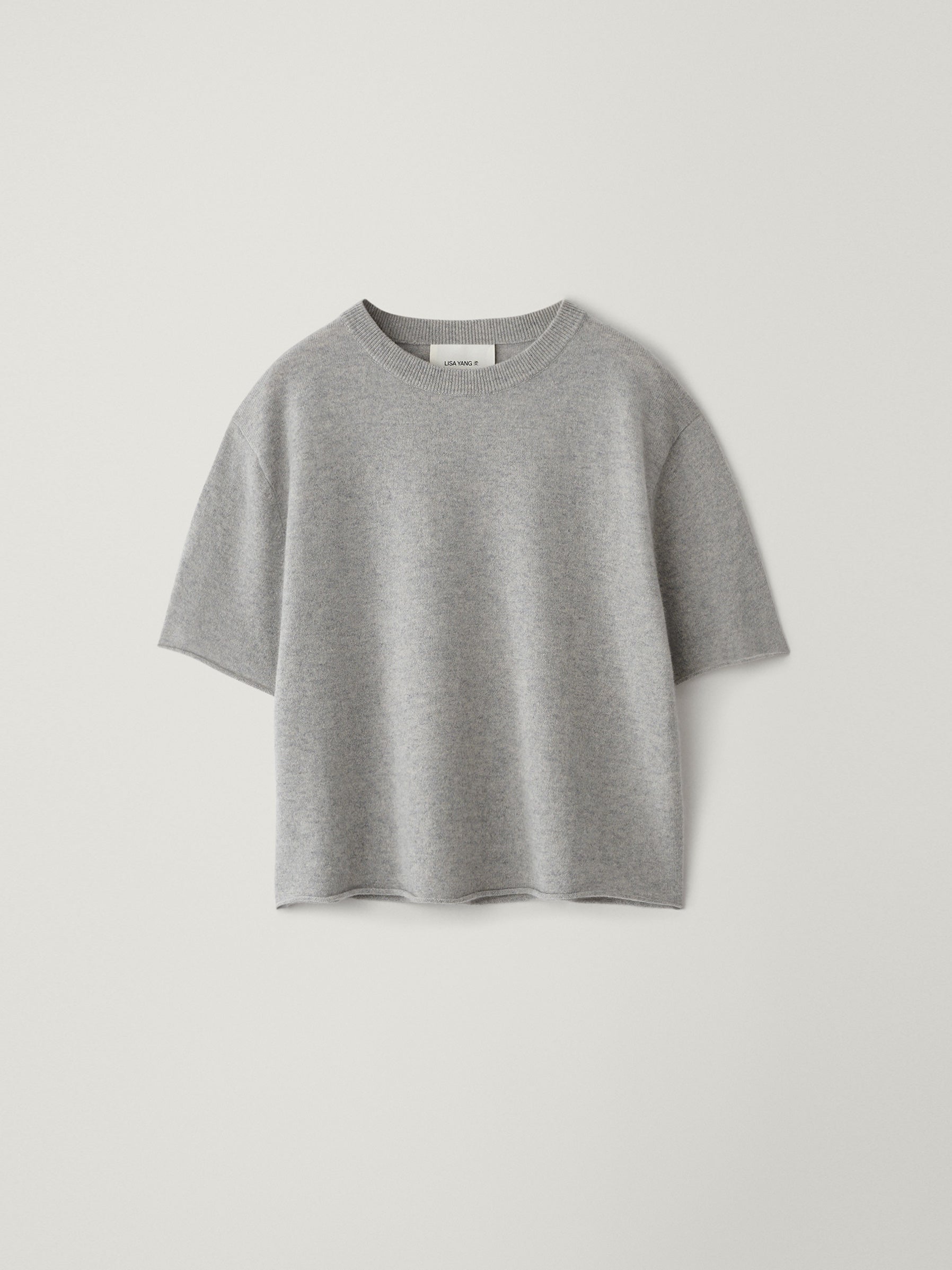 An everyday layering piece, the Cila T-shirt is crafted in soft, mid-weight cashmere for year-round wear. The slightly wide and cropped silhouette is framed by a crew neck, dropped shoulders and short sleeves, with a rolled hemline which crops at the hip.