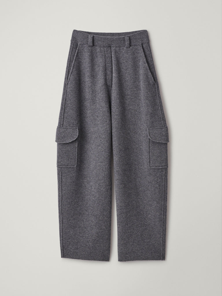 A knitted cargo trouser, the Azaria trouser is crafted in our signature knitted double face cashmere for directional structure. The relaxed fit, barrel silhouette sits comfortably at the waist with an elasticated waistband and falls to voluminous full-length legs that taper at the ankles. It is detailed with a tailoring-inspired faux fly and belt loops and finished with utility-inspired patch pockets.