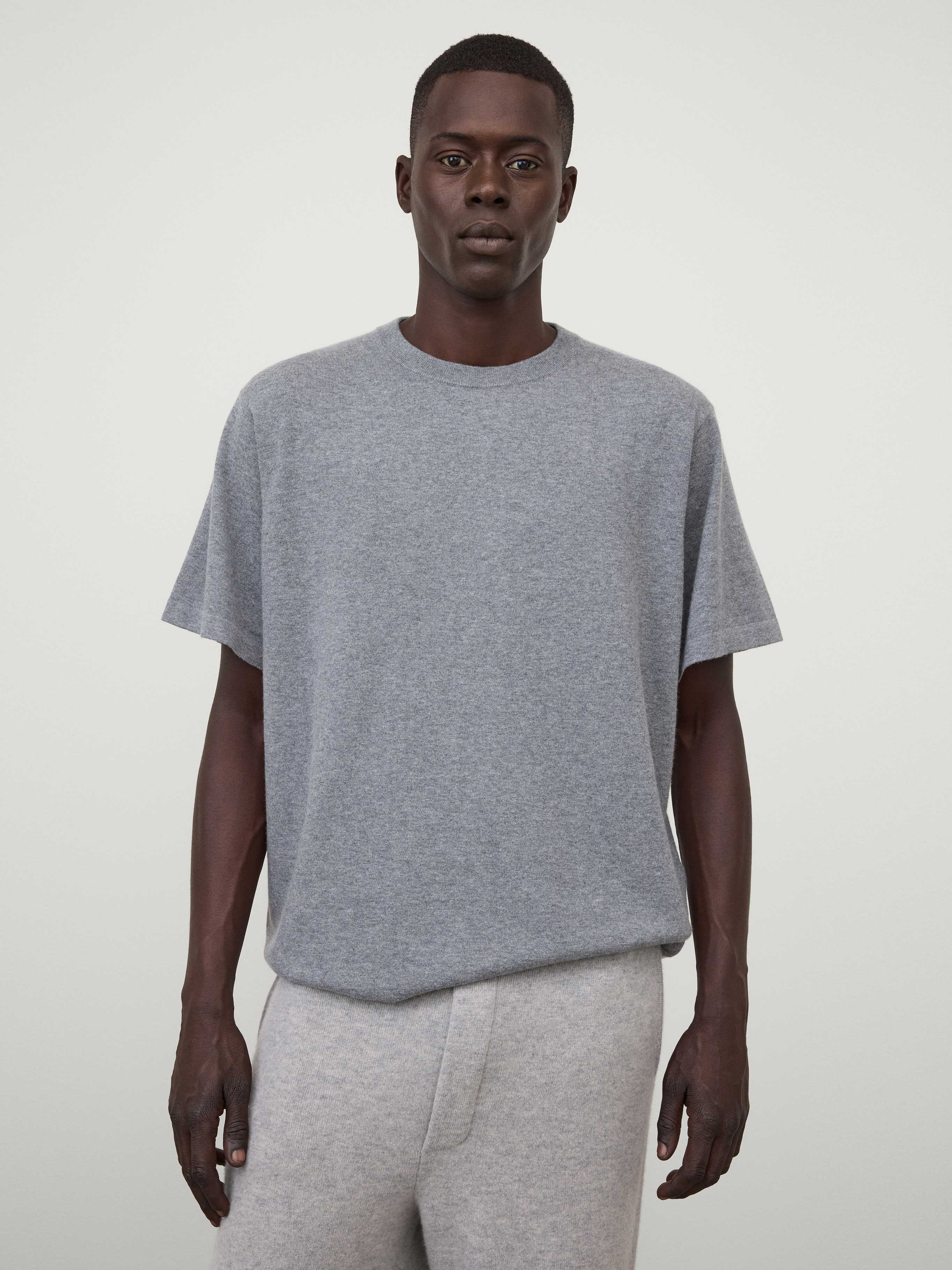 A light and lofty staple, the Bradley T-shirt is expertly knitted in our jersey-inspired cashmere cotton composition. The regular fit silhouette is complete with a ribbed crew neck, short sleeves and a straight hem which is finished with ribbed trims.