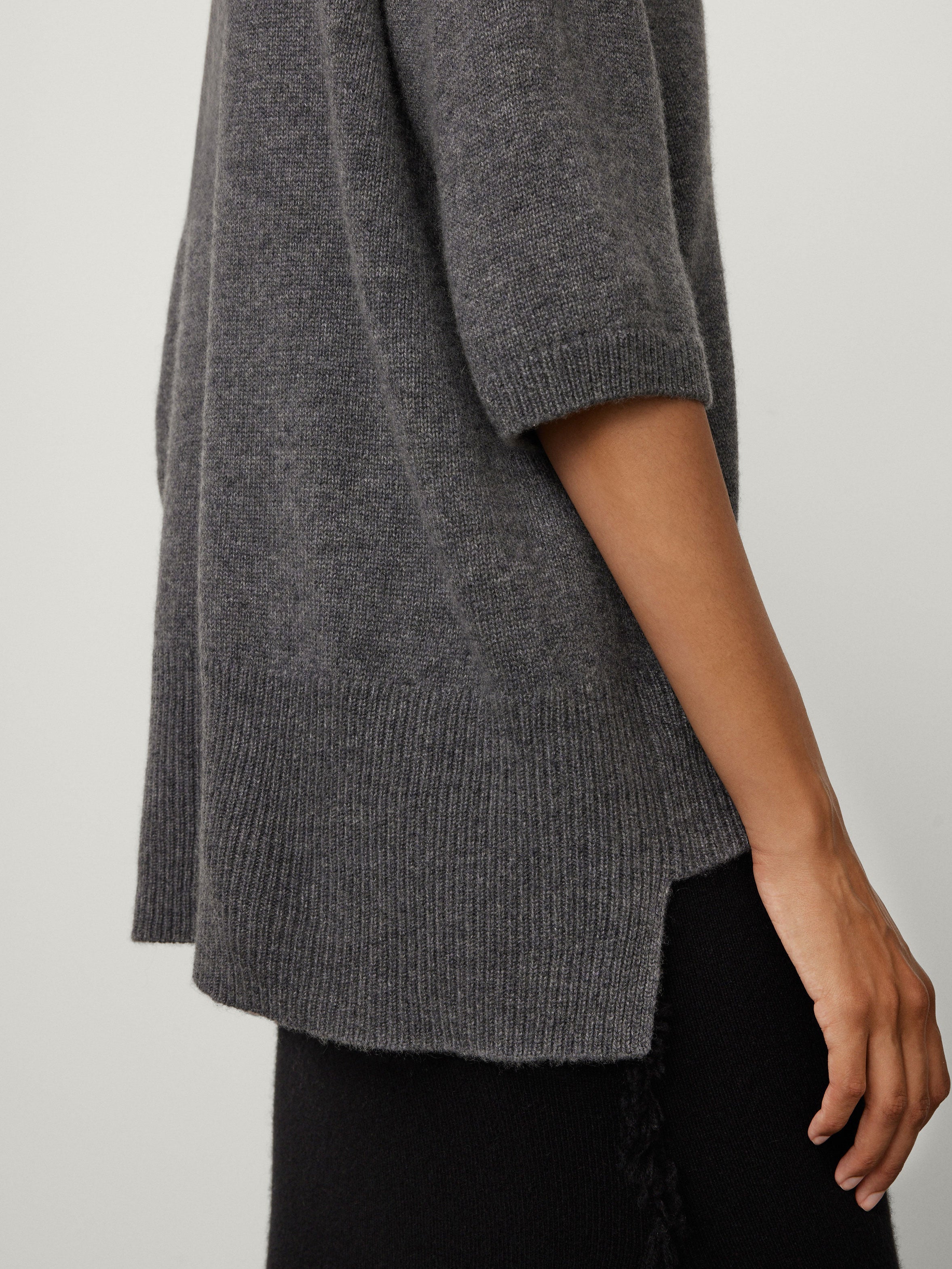 A feminine crewneck, the Camille sweater is crafted in plush, heavy knit cashmere that feels rich to the touch. The relaxed silhouette is framed by a round neck, dropped shoulders and three-quarter length sleeves, complete with a graphic step hemline which is longer at the back.