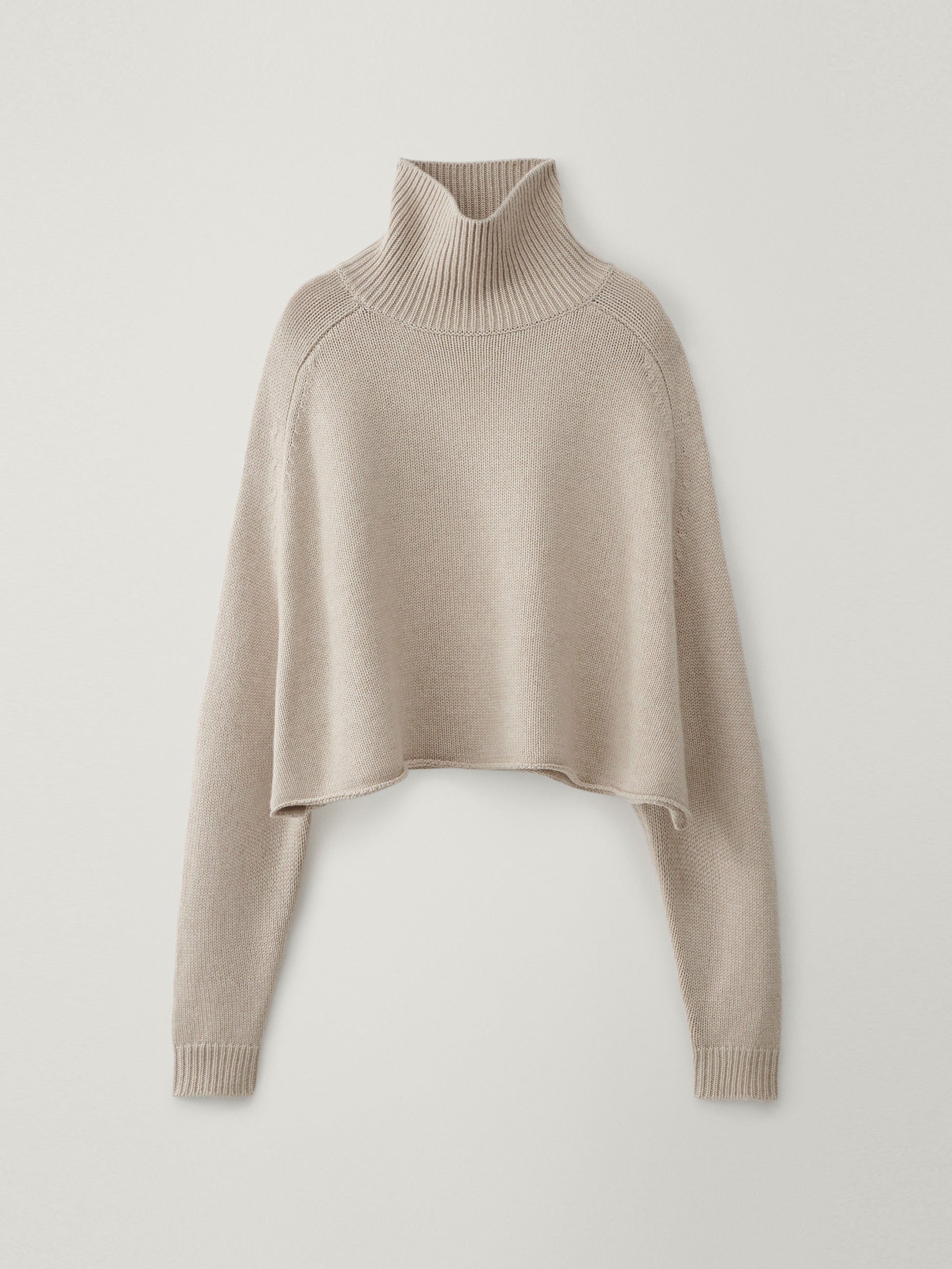 A piece with modern proportions, the Cathie sweater is crafted in our signature plain knit cashmere with a rich hand feel. The relaxed fit, wide silhouette creates gentle drapes along the front and back and features an enveloping high neck, elongated raglan sleeves, ribbed trims and a cropped hem.