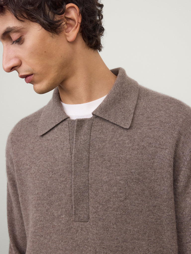 An everyday investment, the Emil sweater is knitted in our soft, mid-weight cashmere for year-round wear. The regular fit silhouette features a polo shirt neckline with a concealed half placket, full-length sleeves and a split bottom hem side detail.