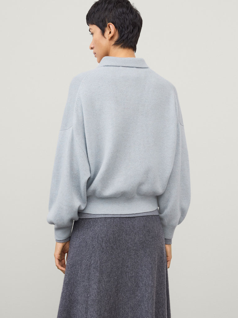 A new seasonal silhouette, the Etta sweater is crafted in our signature mid-weight, plain knit cashmere. The relaxed fit, hip-length silhouette features a buttoned polo shirt neck, dropped shoulders, full-length sleeves and a ribbed hem.