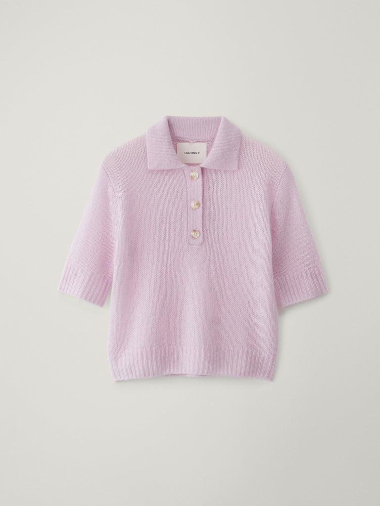 A feminine polo shirt, the Masy top is knitted in our textured silk cashmere composition with a featherlight hand. The regular fit, slightly cropped silhouette features a neat polo shirt neckline with buttons, short sleeves and ribbed trims.