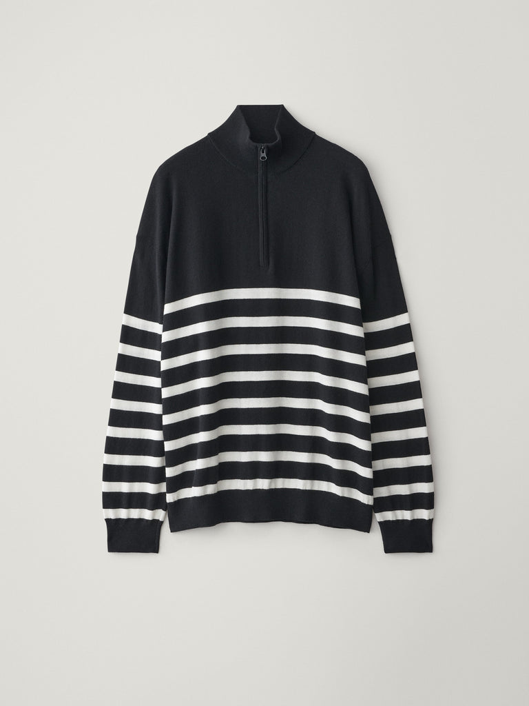 A sportswear-inspired sweater, the Otis sweater is crafted in our fine knit cotton cashmere composition suggestive of jersey. The regular fit silhouette is defined by a zipped mock turtle neck, full-length sleeves and a ribbed hem and trims.
