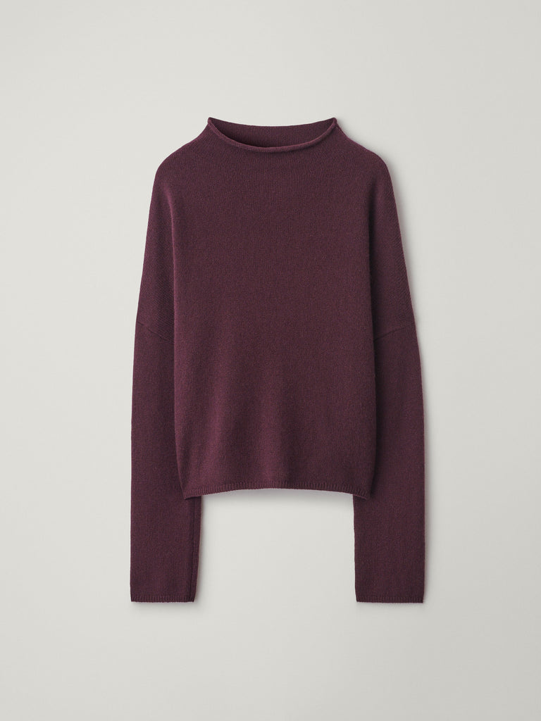 A plush top layer, the Sandy sweater is crafted in rich, heavy knit cashmere to wide proportions. The enveloping silhouette creates effortless drapes at the front and back, made sublime by the generous rolled mock neck and relaxed dropped shoulders.