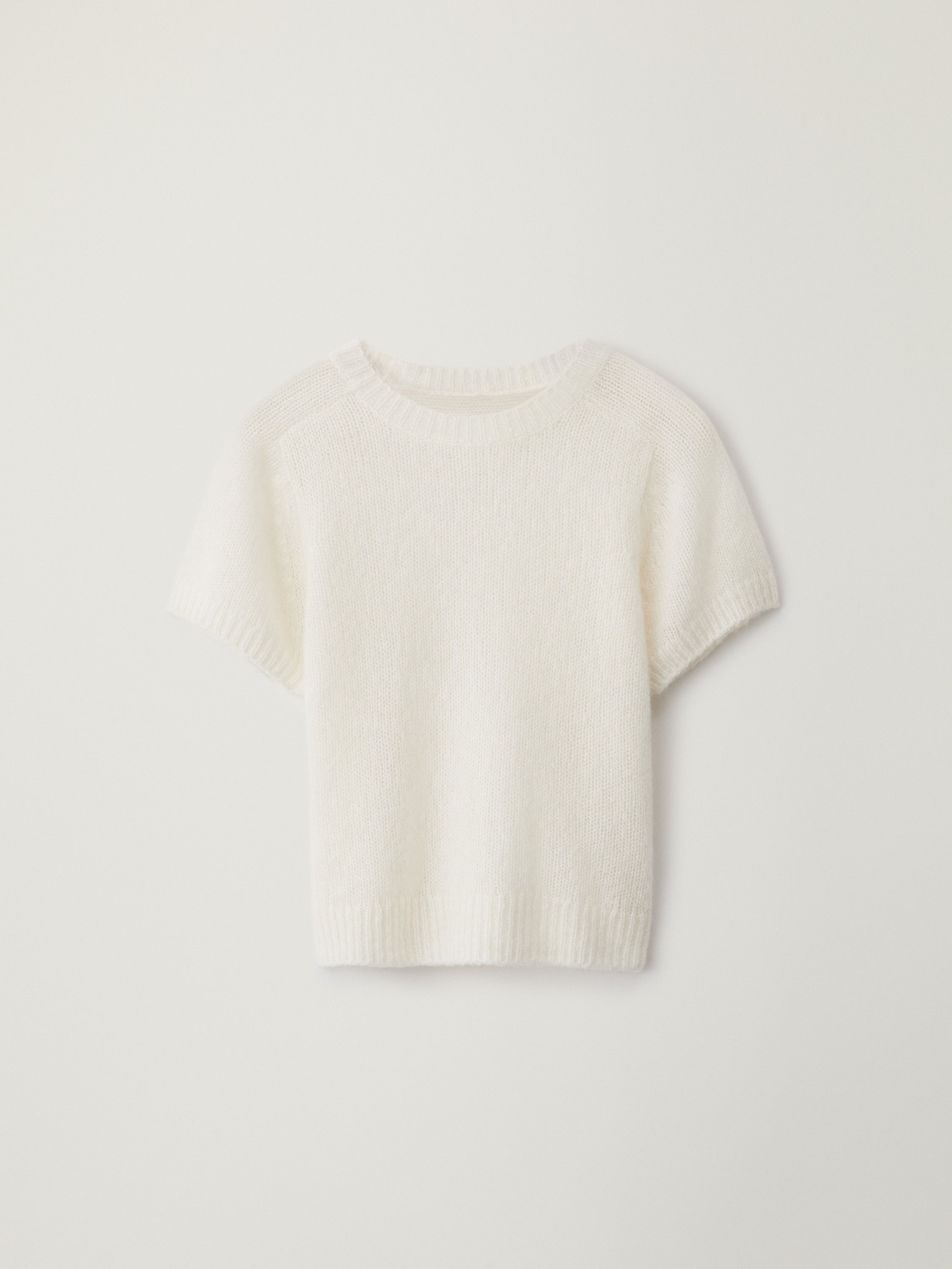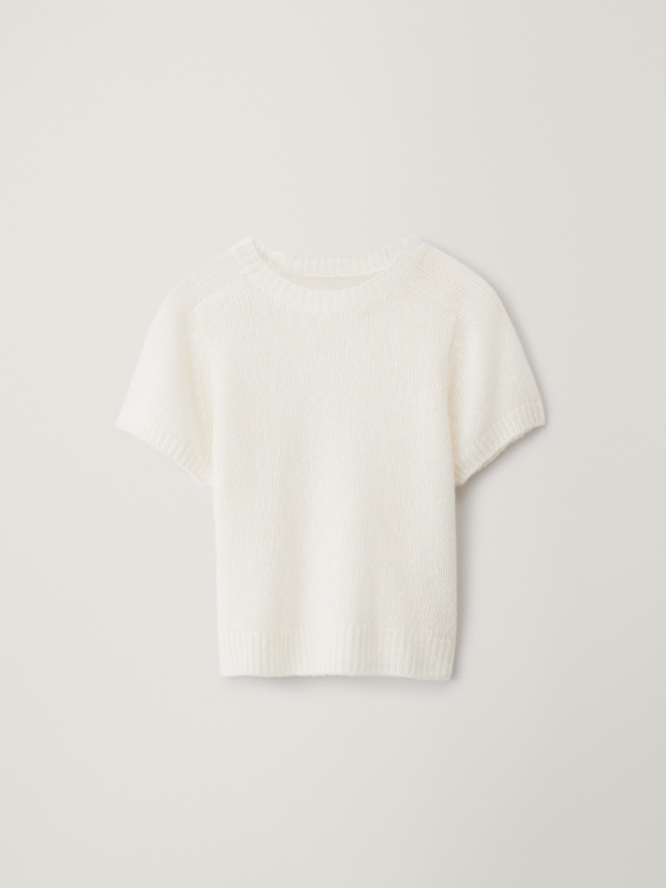 A top with artisanal texture, the Siona T-shirt is knitted in our sumptuous silk cashmere blend with a light and lofty hand feel. The regular fit, cropped silhouette features a round neck, short sleeves and ribbed trims.